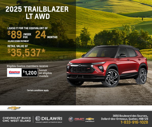 With Chevrolet Buick GMC West Island’s regularly updated special offers, saving money on the purchase of a new or pre-owned vehicle in Montreal is easy. You can even ensure that your Chevrolet, Buick, or GMC vehicle receives the quality after-sales service it deserves at an affordable price.