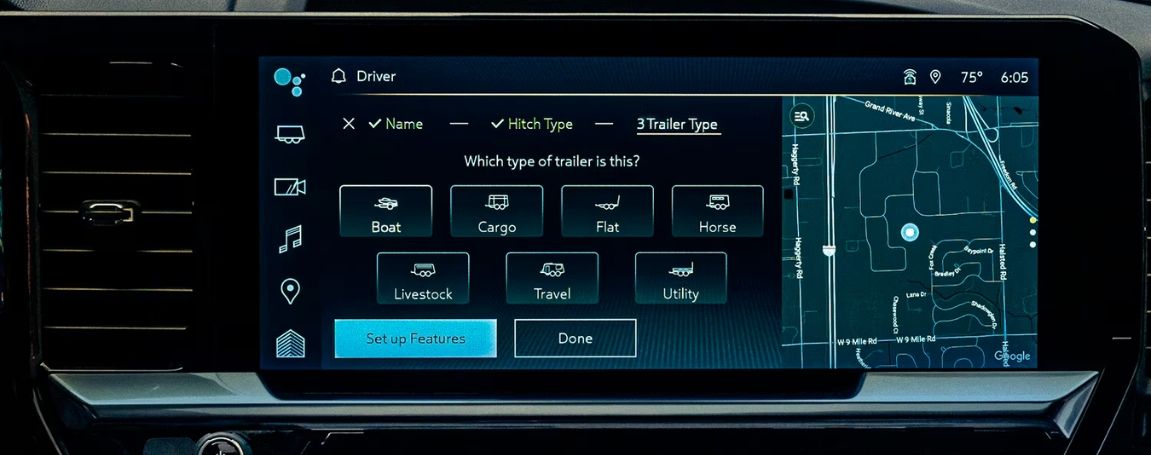 Le multimédia du véhicule est dominé par un large écran tactile de 12 à 13,4 pouces selon les modèles, compatible avec Apple CarPlay et Android Auto. Côté sécurité, le camion offre des systèmes de pointe comme le contrôle de la remorque, de la stabilité ainsi qu’un avertissement de franchissement de ligne.